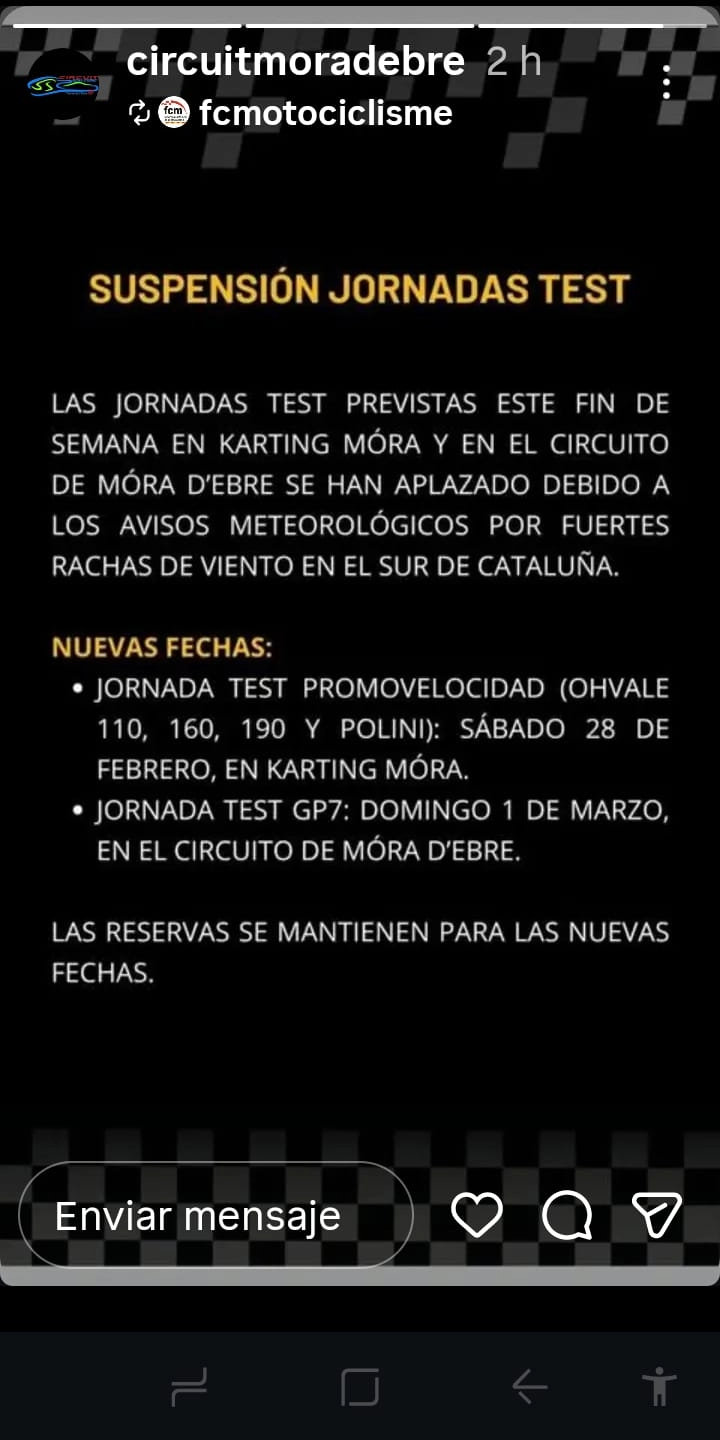 ANULADA LA JORNADA OFICIAL DE TEST DE GP7, DEL DIA 15/02/2026